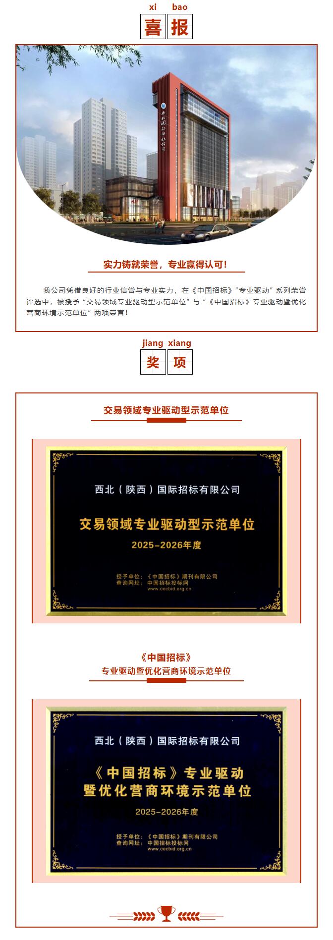 實力鑄就榮譽,專業(yè)贏得認可--西北國際招標公司在《中國招標》“專業(yè)驅(qū)動” 系列榮譽評選中獲兩獎項