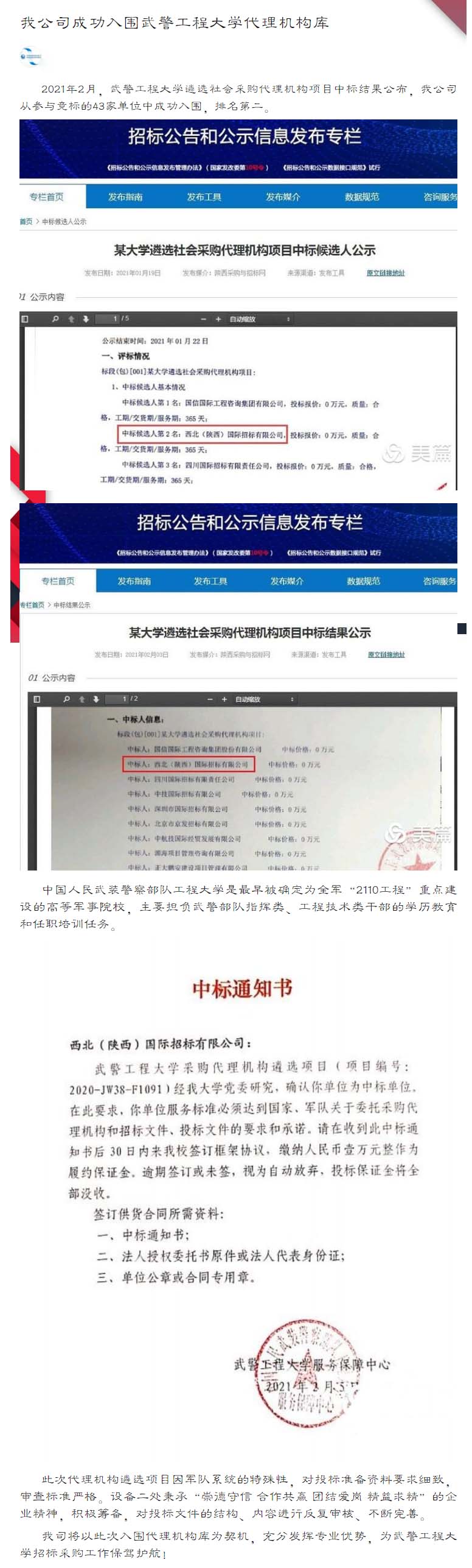 我公司成功入圍武警工程大學代理機構(gòu)庫