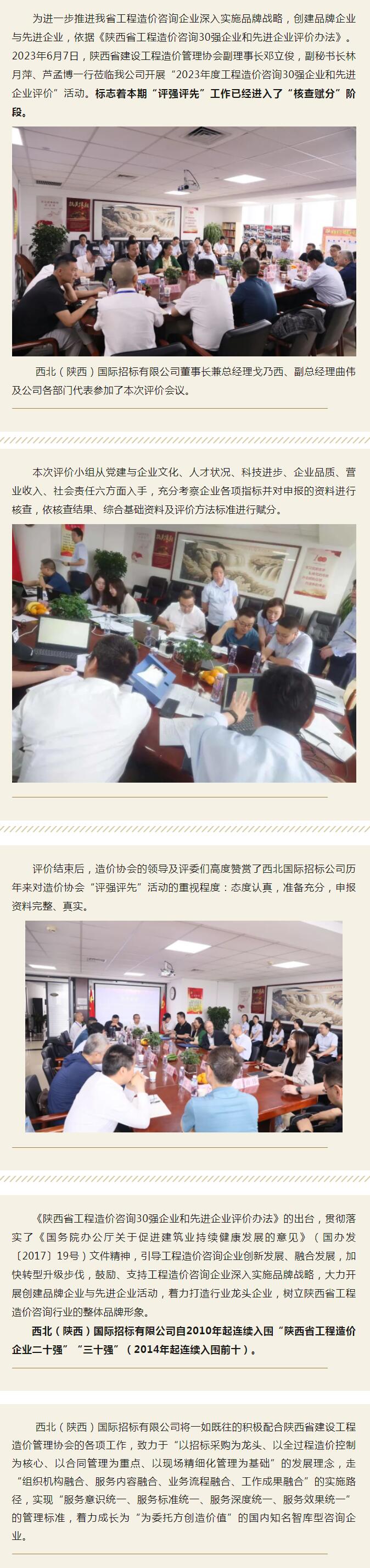 陜西省建設(shè)工程造價(jià)管理協(xié)會(huì)蒞臨我公司開(kāi)展“2023年度工程造價(jià)咨詢30強(qiáng)企業(yè)和先進(jìn)企業(yè)評(píng)價(jià)”活動(dòng)