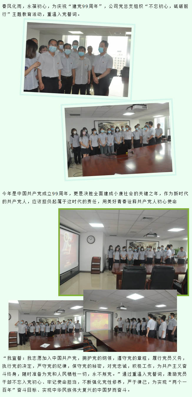 熱烈慶祝中國(guó)共產(chǎn)黨建黨99周年 不忘初心,砥礪前行——公司黨總支組織重溫入黨誓詞儀式