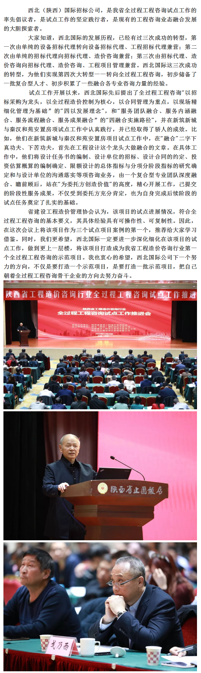 我公司在工程造價咨詢行業(yè)全過程工程咨詢試點工作推進會上獲陜西省建設工程造價咨詢協(xié)會會長彭吉新高度贊揚