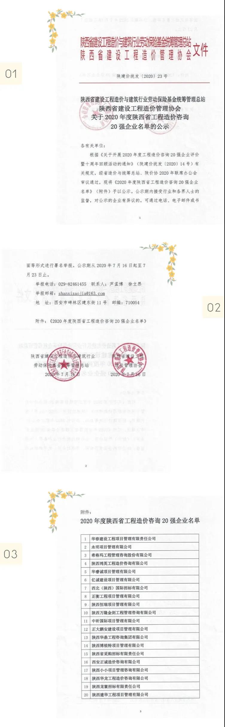 2020年7月17日,陜西省建設(shè)工程造價(jià)管理協(xié)會(huì)(簡稱陜價(jià)協(xié))發(fā)布“關(guān)于2020年度陜西省工程造價(jià)咨詢20強(qiáng)企業(yè)名單的公示”,西北(陜西)國際招標(biāo)有限公司再次入圍,榮獲“第七名”。