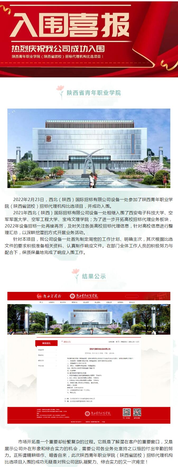 西北(陜西)國際招標有限公司成功入圍陜西青年職業(yè)學院(陜西省團校)招標代理機構(gòu)比選項目