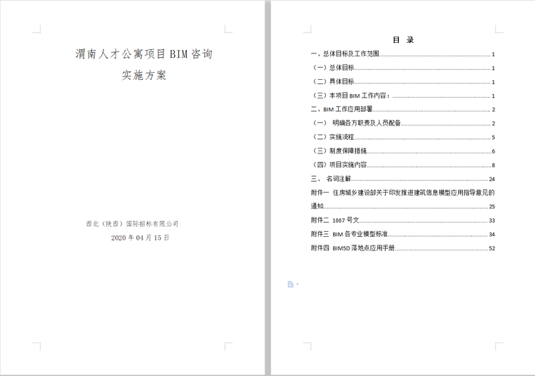 我公司于2020年4月成功中標(biāo)渭南高新區(qū)東區(qū)人才公寓項目全過程工程咨詢,是我公司首例包含BIM技術(shù)應(yīng)用的全過程工程咨詢項目。BIM中心對成立以來的首個項目格外重視,在項目前期充分準(zhǔn)備,工作有序開展。在鞏總、王東總的指導(dǎo)下,完成了部分階段性工作。疫情期間,BIM中心成員多方搜集資料,深入學(xué)習(xí),不斷調(diào)整思路,多次在綜合管理部內(nèi)部、渭南項目部通過視頻會議的形式,修改討論,完成了實施方案從0到1的編制工作,明確了本項目的總體目標(biāo)與工作范圍,對BIM應(yīng)用做出了準(zhǔn)確的規(guī)劃與部署。