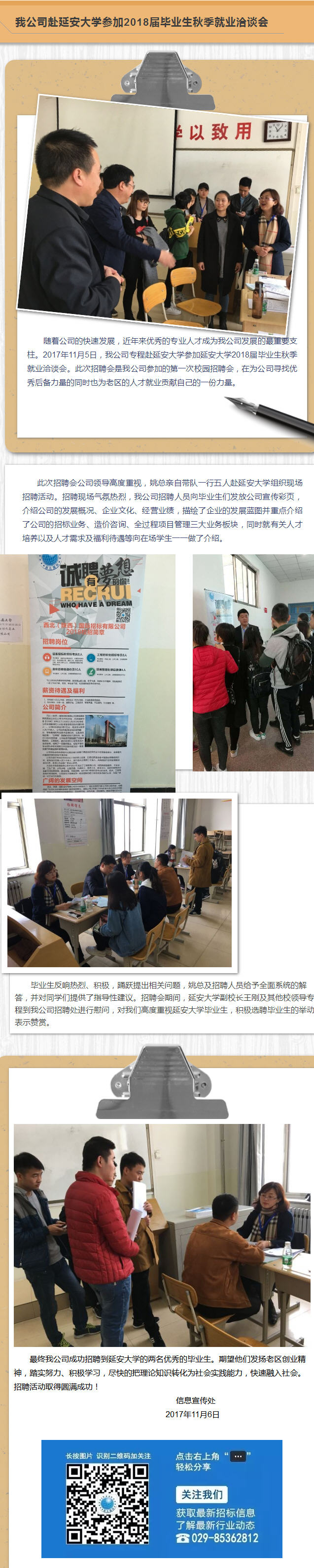 我公司赴延安大學2018屆畢業(yè)生秋季就業(yè)洽談會