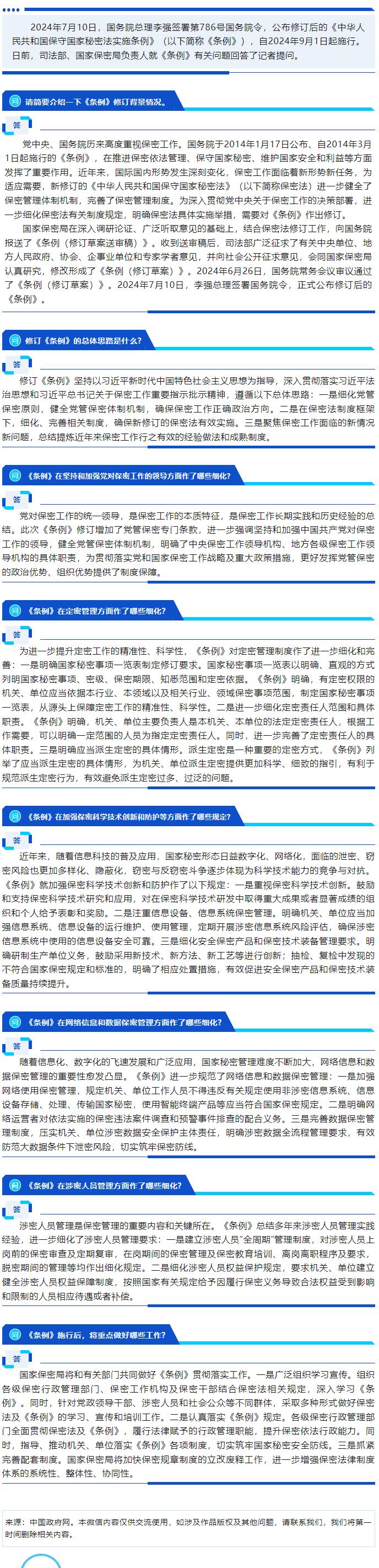 司法部、國(guó)家保密局負(fù)責(zé)人就《中華人民共和國(guó)保守國(guó)家秘密法實(shí)施條例》修訂答記者問