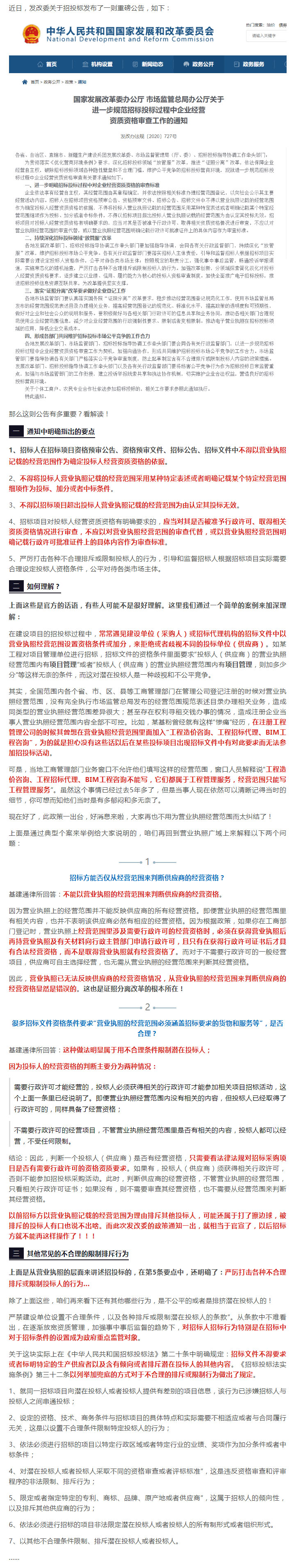 發(fā)改委發(fā)布關于進一步規(guī)范招標投標過程中企業(yè)經(jīng)營資質(zhì)資格審查工作的通知
